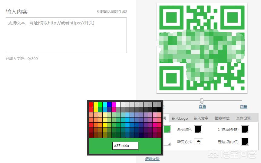2.接着在弹出的对话框中就可以直接输入文本实现二维码制作了,最大字数是300字,制作的效果如下,也支持背景色、前景色设置、logo等功能,用起来也非常不错: