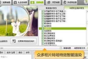 数码大师拥有五百多种炫酷的转场特效,其种类和动感效果均属同类软件之最,而且还提供了画心、星光闪耀、怦然心动、落樱纷纷等梦幻、浪漫的动感场景。而使用软件的“彩蛋”功能,可启用更多动感场景特效,以及自由编排场景展示顺序。