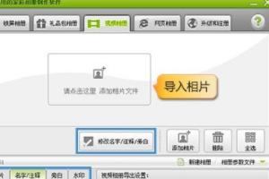 切换到“视频相册”选项卡,点击相片列表中部的大按钮,悉数导入相片。点击 “修改名字/注释/旁白”按钮,为每张承载着满满回忆的相片,配上甜言蜜语,让亲友们也能感受到新人们那份浓浓的爱意!而在主界面底部“名字/注释”和“旁白”选项卡中,可设置个性化的文字样式。