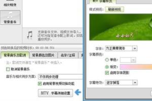 制作带感婚礼视频,背景音乐是不可或缺的。切换到左栏“背景音乐”选项卡,导入背景音乐及其对应的LRC歌词。如下图设置,还能为婚礼视频打造酷炫的MTV动感歌词字幕,让视频效果尽善尽美。