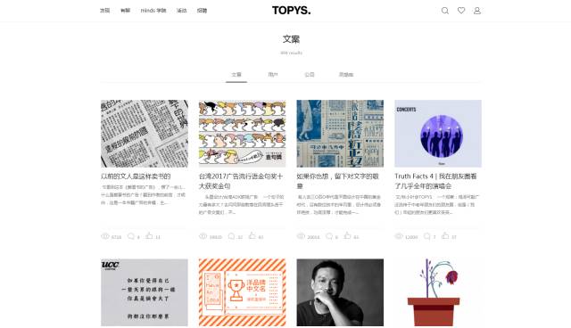 网站里的栏目中,名人访谈(广告人访谈)、好广告、创意越过界、方法论是我比较爱看的栏目。顶尖文案里并不单纯是文案,还有关于广告、创意、行业、品牌中的内容。