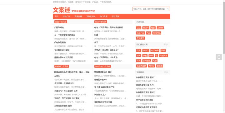 ⑥文案迷 文案迷里有不少文案案例,涵盖了各个行业,餐饮、互联网、汽车、房产等等,在搜索栏直接输入品牌或带代言人即可找到对应文案,当然现有的文案资源还比较有限。在满篇文案的洗礼之下,可能会闪出一些创意的火花吧。