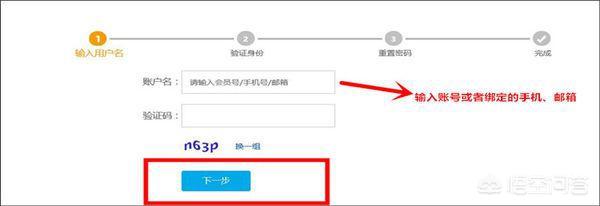 3.输入账号绑定的手机或者邮箱,点击【下一步】;