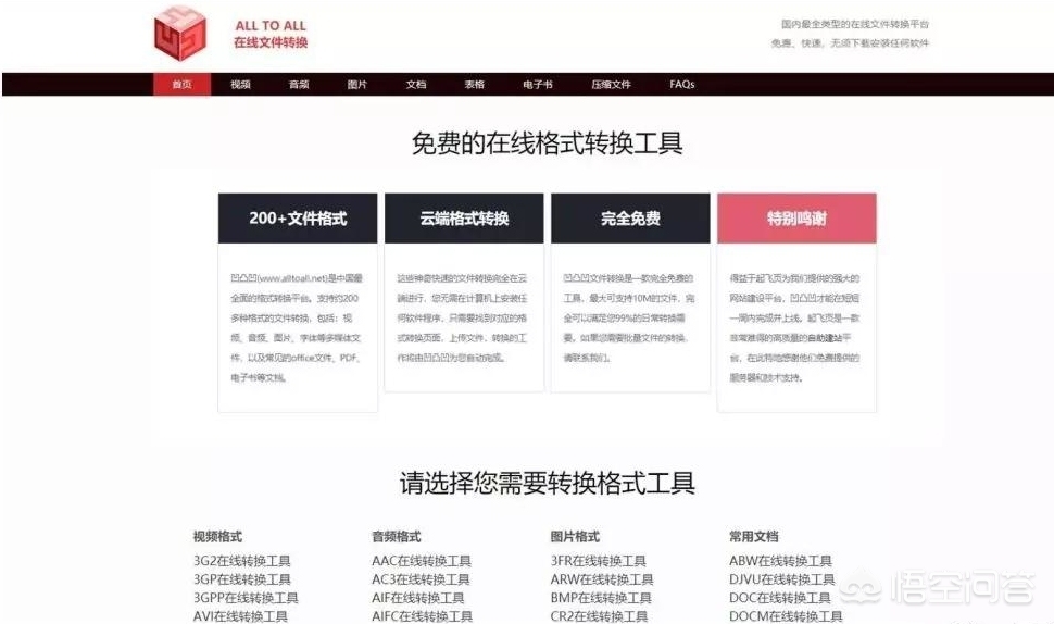 它支持视频格式,音频格式,图片格式,常见文档,表格格式,演示用文档格式,电子书格式,压缩格式;总之,只要你需要转换的任意文件,就可以用这个工具试试。