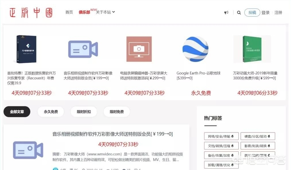 它提供免费软件板块,也提供收费软件的各种活动,并且网站会经常更新。