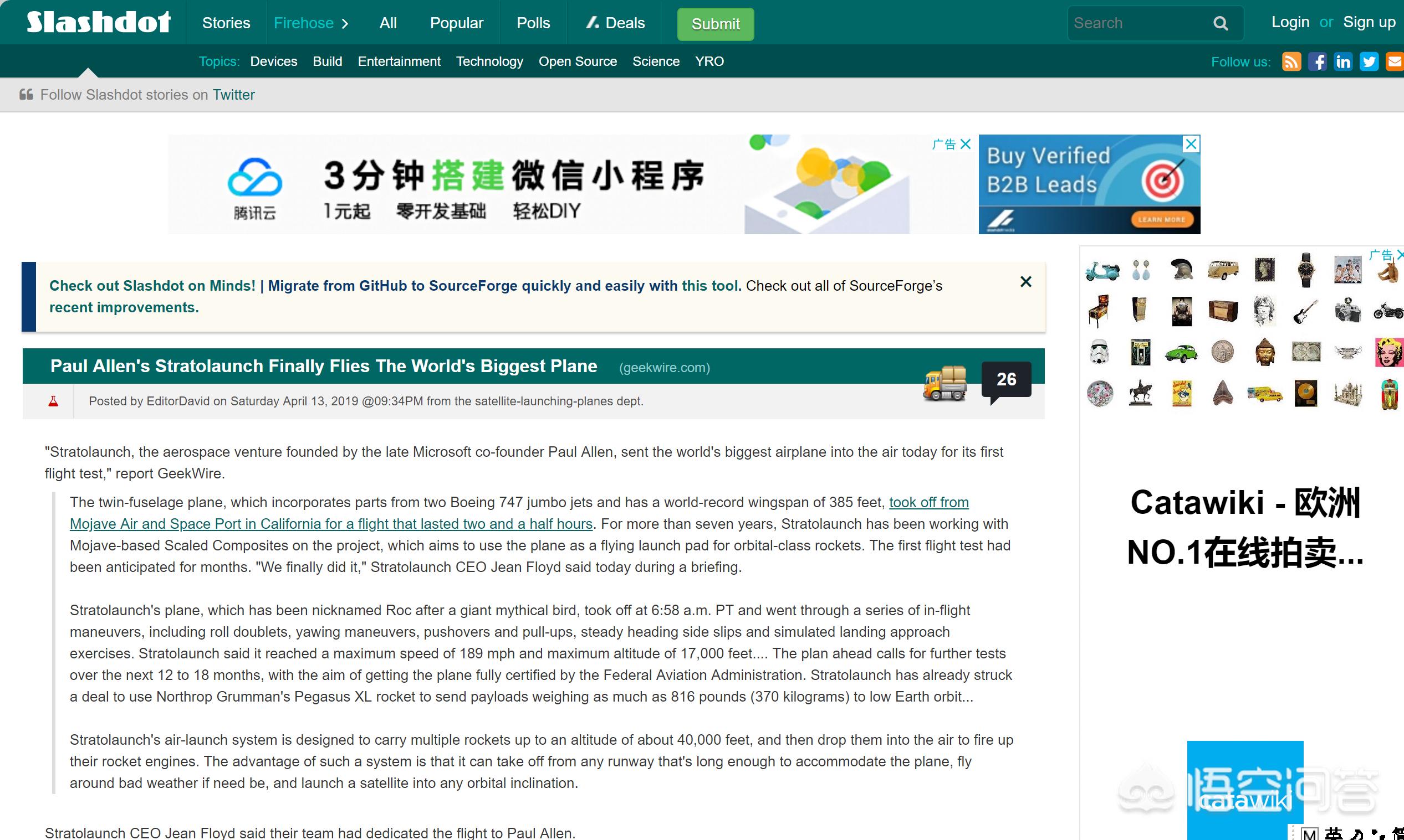 Slashdot是一个资讯科技网站。它每天都会更新在主页的新闻数次。网站使用者可以对公布在该站的新闻发表意见。通常在头版的新闻会有最少有70个意见。较受欢迎的新闻可能会有上千的意见。