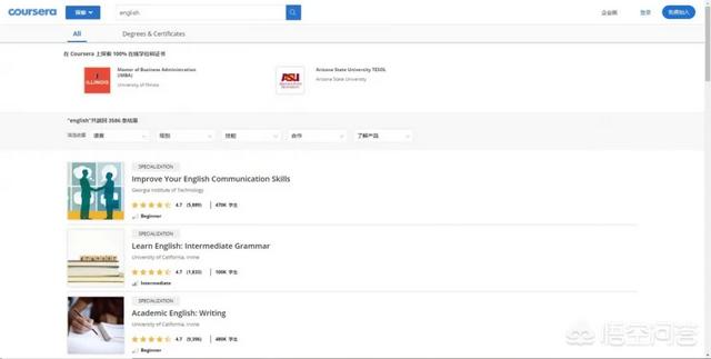 学英语这个网站排第二,没人敢说自己是第一,相当于国外的MOOC网,不仅能学英语,还能看到很多国外名校的课程,只需要输入关键词english,你就能获取三千多个学习资源,网罗哥曾一度沦为该网站的重度用户