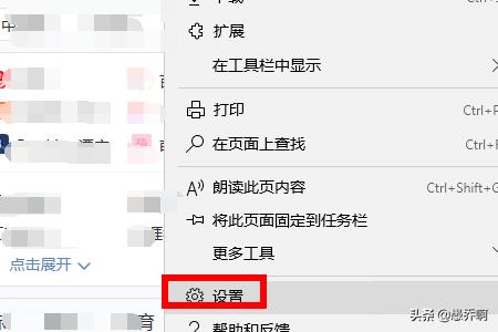 4、在弹出的菜单里选择“设置”选项。