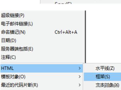 2、然后插入的选项窗口中,选择HTML。再选择框架。如图所示: