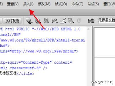 1、首先在DW软件中创建一个HTML文件,然后点击工具栏上的插入。如图所示: